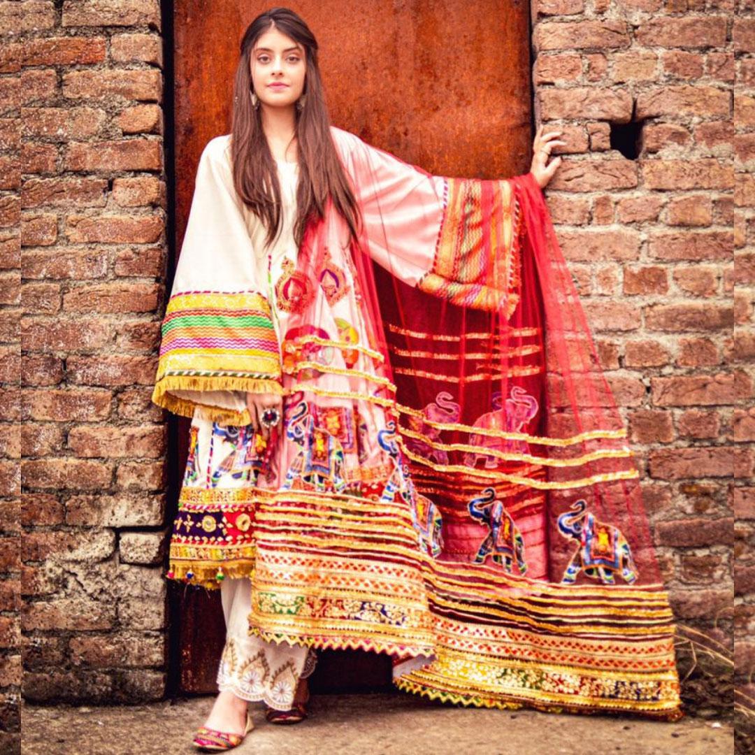Description: Full Sleeves Frock with Waist, Dupatta & Trouser – Ready To Wear