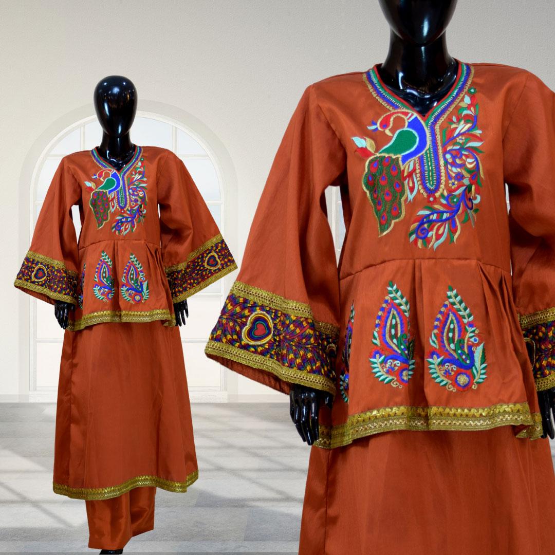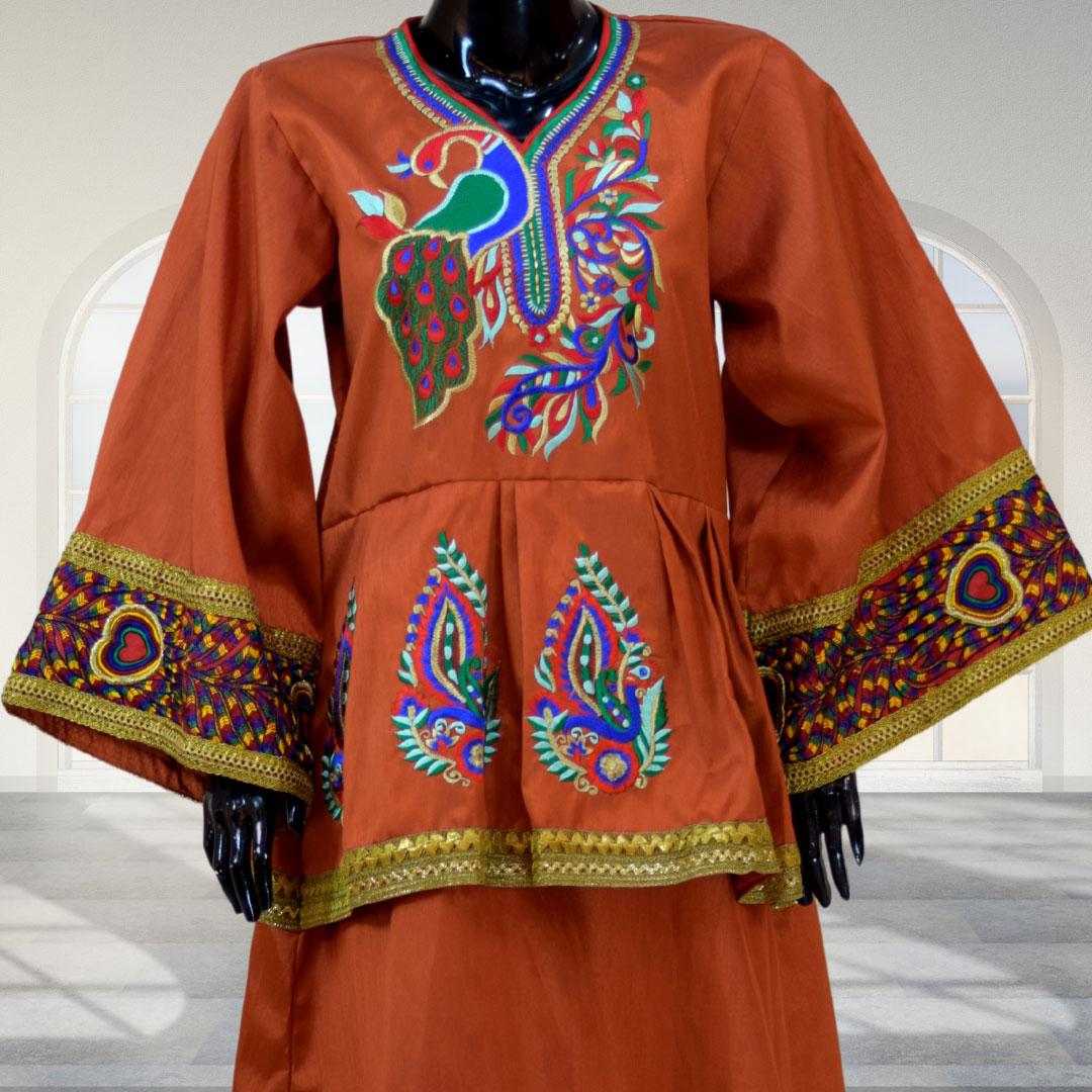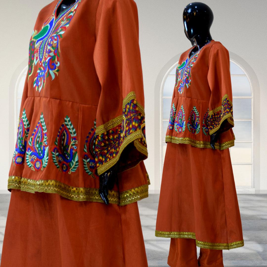 Description: Full Sleeves Double Layer Frock with Trouser – Ready To Wear
